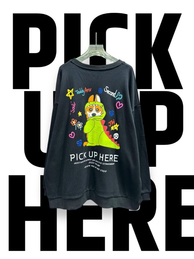 PH15 韓國 🇰🇷 PICK UP HERE背面恐龍狗仔衛衣 ❌原價$449❌ ACE直播價$179 黑、白、粉 Size:F、L