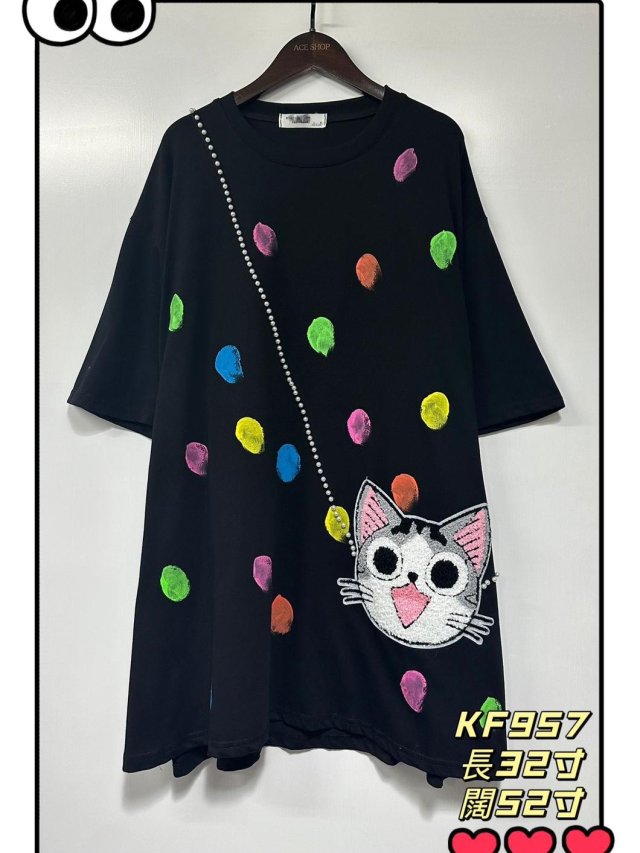 KF957 彩色波點貓貓袋仔TOP $130 長32寸 闊52寸