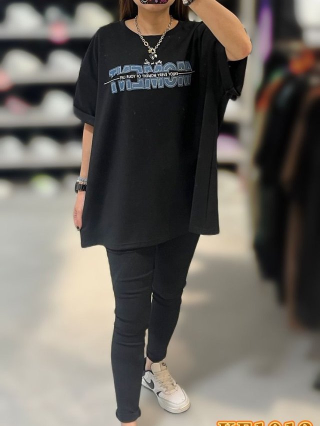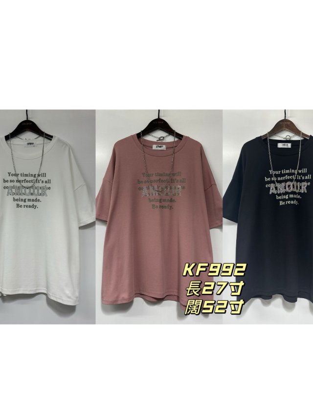 KF1012 棉料牛仔刺繡字Top $100 長30寸、總闊56寸 黑、紫、灰