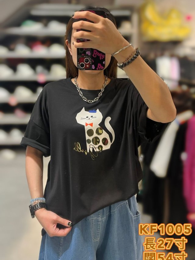 KF1005 棉料蝴蝶結貓貓Top $130 黑、啡 長27寸、總闊54寸