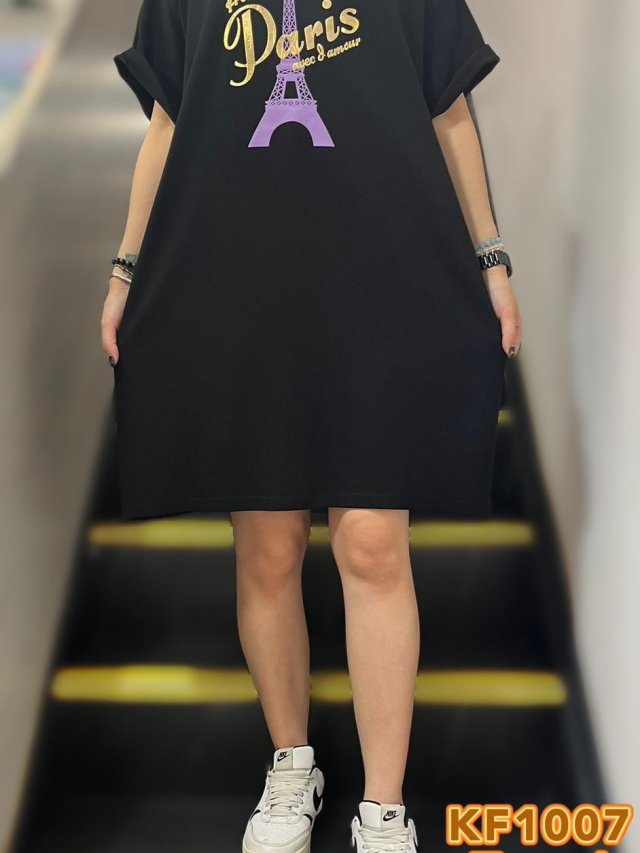 KF1007 棉料鐵塔印字Ops $150 黑、啡 長36寸、總闊54寸