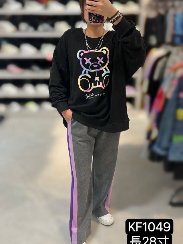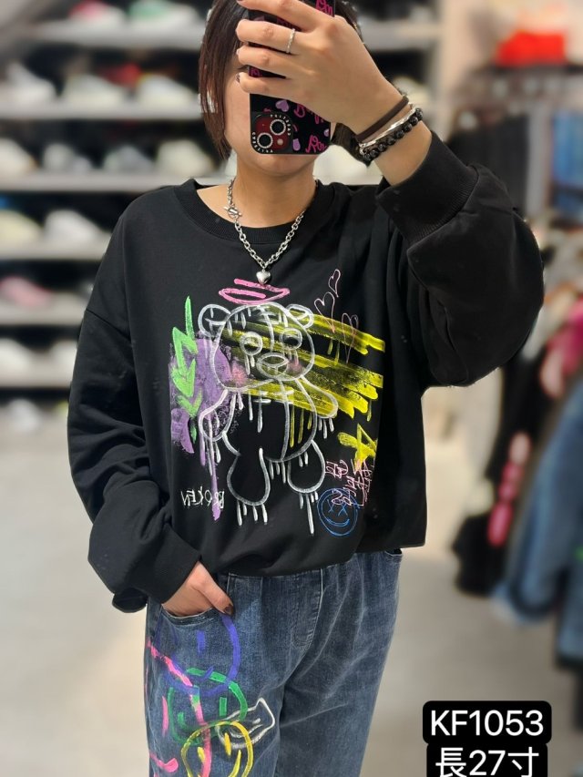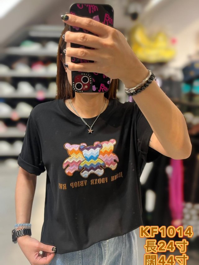 KF1014 棉料繡線熊仔Top $99 黑、橙、白 長24寸、總闊44寸