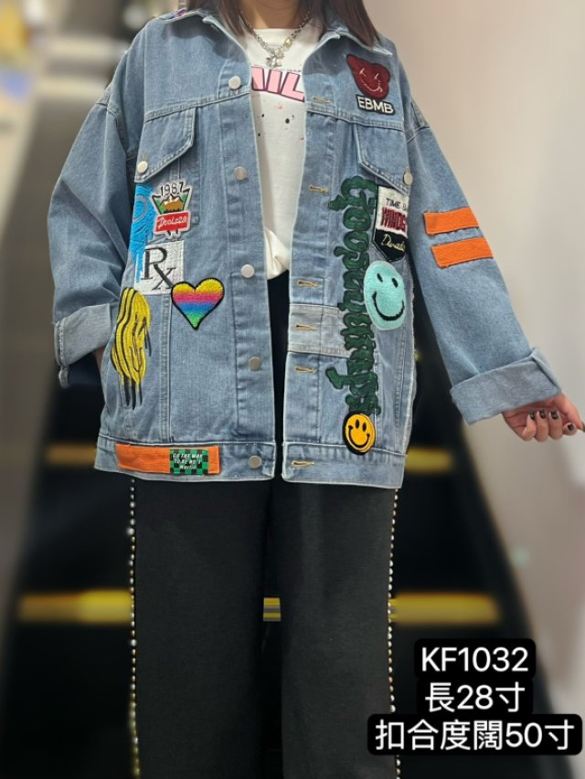 KF1032 重工鑲石後哈哈笑牛牛仔褸 $180