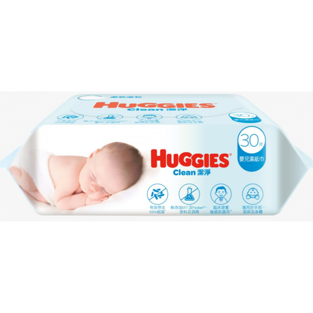💥雙11限時包郵💥No.1006 HUGGIES 潔淨嬰兒濕紙巾30片裝(一套3包) $11@1套