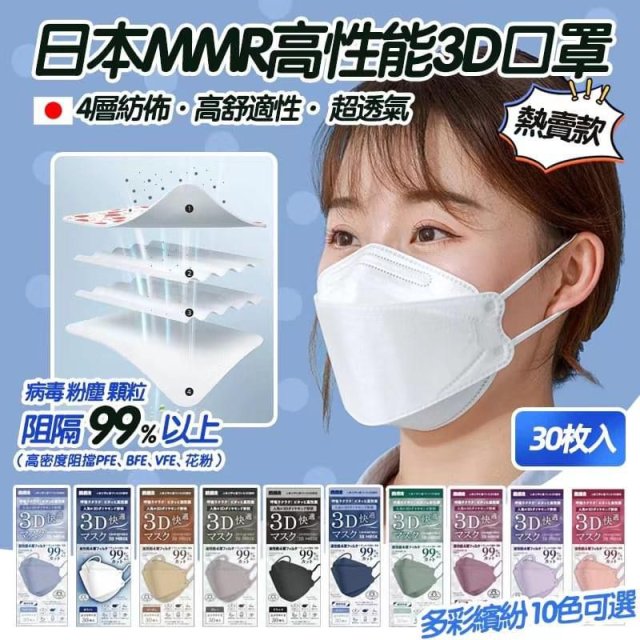 💥雙11限時包郵💥LG175 日本MMR超舒適成人立體口罩(30枚入) $35@1盒,$111@5盒