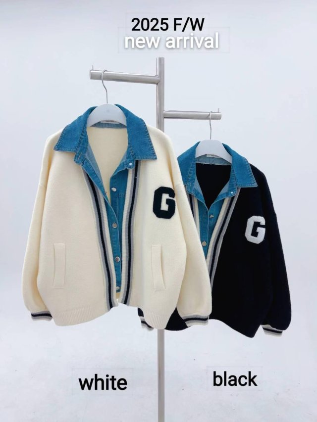 AA89 韓國 🇰🇷 左胸G立體字牛仔冷JK $279 白、黑 長24寸、闊50寸
