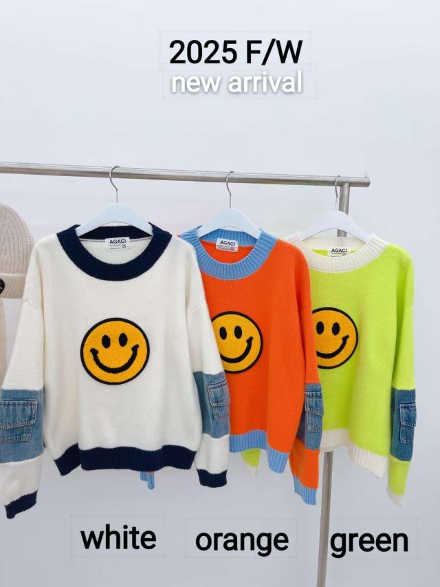 AA94 韓國 🇰🇷 哈哈笑撞色拼牛仔冷衫 $239 白、橙、黃 長23寸、總闊44寸