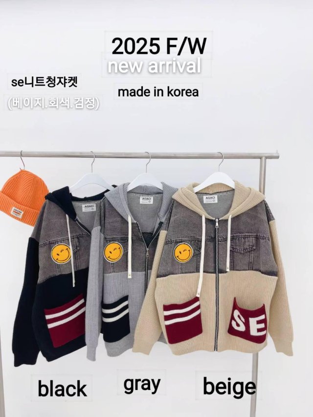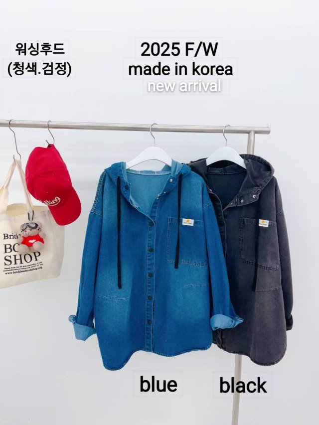 AA102 韓國 🇰🇷 哈哈笑牛仔拼冷有帽JK $329 黑、灰、杏 長27寸、總闊52寸