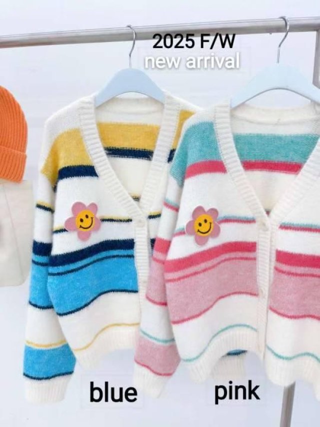 AA97 韓國 🇰🇷 彩色橫間花花冷外套 $239 藍、粉 長25寸、總闊48寸