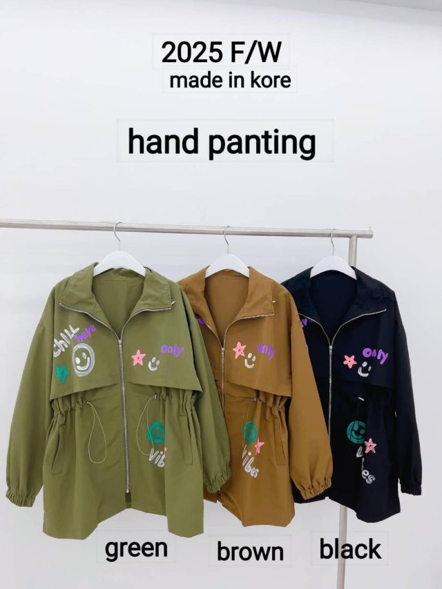 AA101 韓國 🇰🇷 手繪可束腰中長JK $299 綠、啡、黑 長28寸、闊52寸