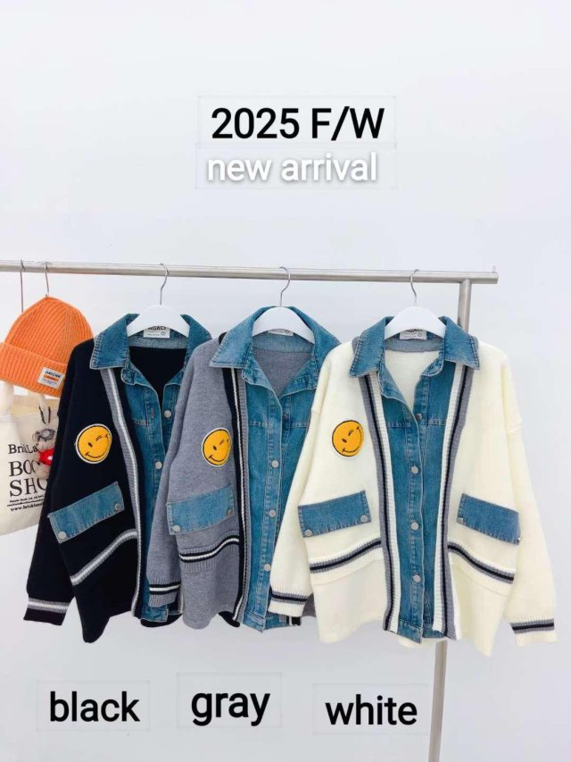 AA103 韓國 🇰🇷 哈哈笑反領牛仔拼冷JK $299 黑、灰、白 長27寸、總闊48寸
