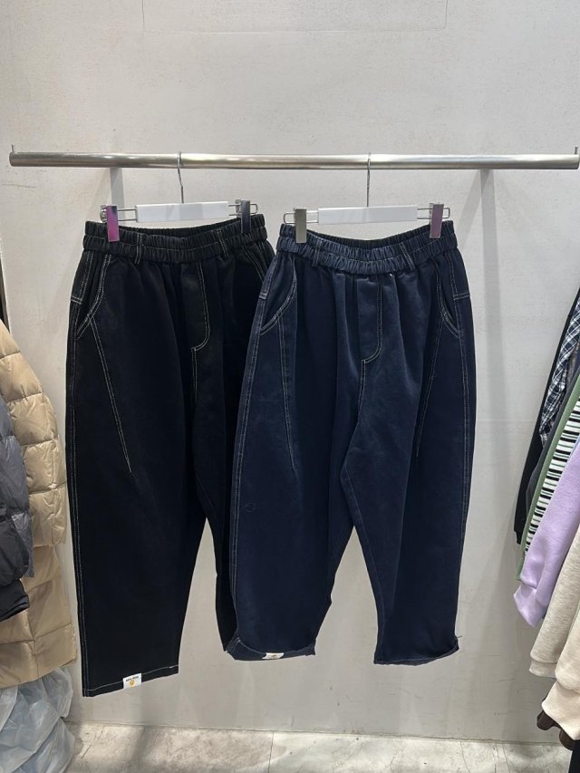 AA107 韓國 🇰🇷 全橡筋腰明車線休閑褲 $239 黑、藍 腰26-44寸、Hip48寸、長94cm