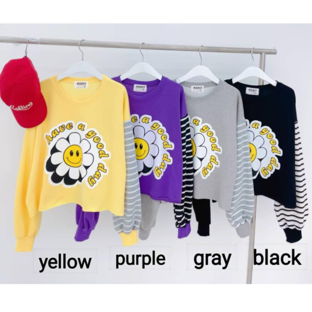 AA90 韓國 🇰🇷 太陽花單邊橫間袖Top $169 黃、紫、灰、黑 長21寸、闊54寸