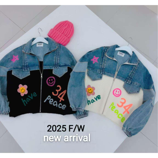 AA99 韓國 🇰🇷 手繪牛仔拼冷JK $359 黑、白 長24寸、總闊56寸