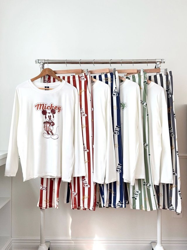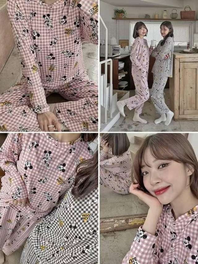 WY111 米奇莫代爾棉料長袖睡衣套裝 $149 啡、藍、綠、灰 F、XL