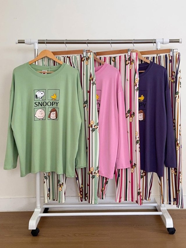 WY112 史路比莫代爾棉料長袖睡衣套裝 $149 綠、粉、紫 F、XL