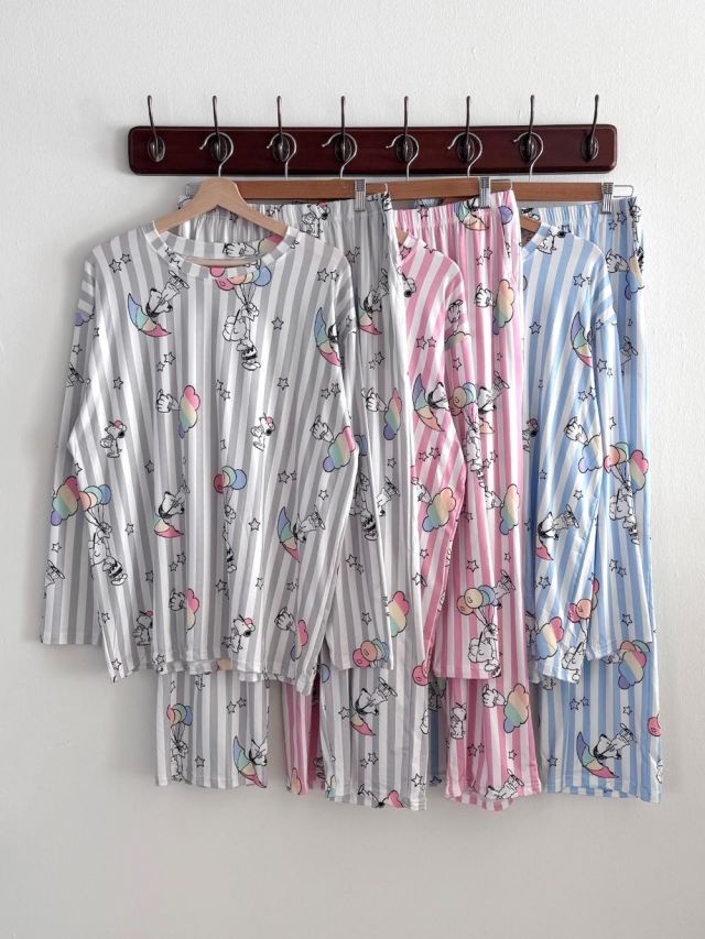 WY113 史路比莫代爾棉料長袖睡衣套裝 $139 灰、粉、藍 F、XL