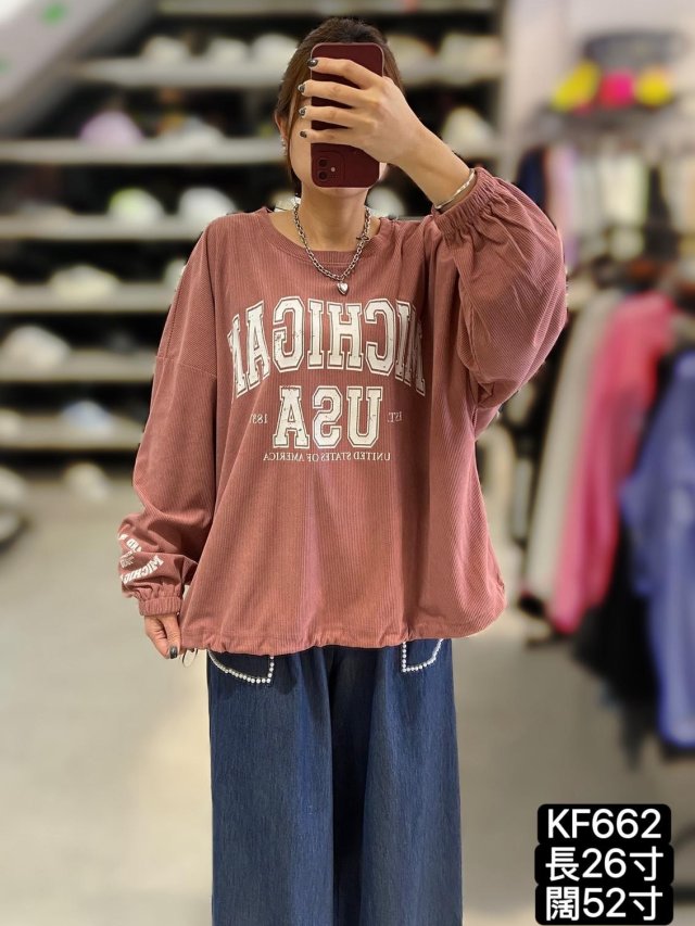 KF662 燈芯絨料印字Top 長26寸、闊52寸 $149 黑、粉