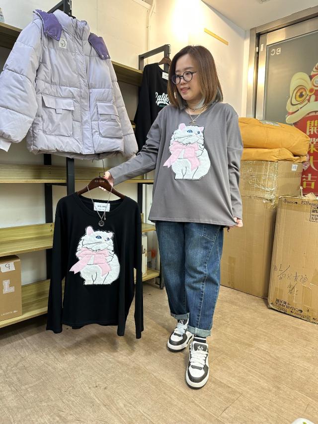 KF765 棉料立體貓貓TOP 黑 灰 長26寸、闊54寸 $139