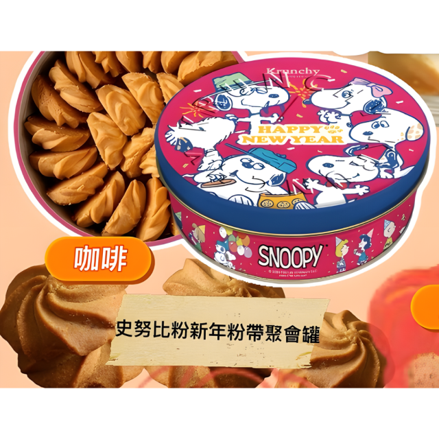 FD1849 米樂 曲奇餅史努比粉新年彩帶 聚會罐 咖啡味 $119@1罐,3罐或以上每罐-$9