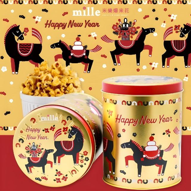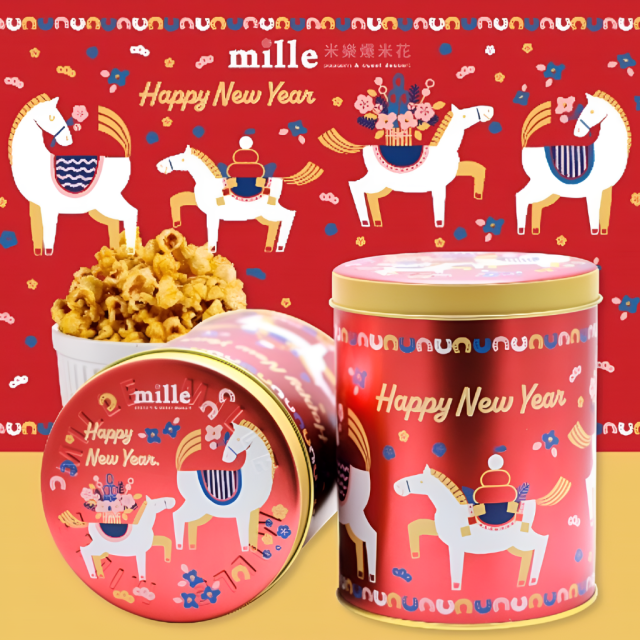 FD1845 米樂 白馬花開富貴紅罐爆米花195g 焦糖味 $69@1罐;3罐或以上$65@1罐