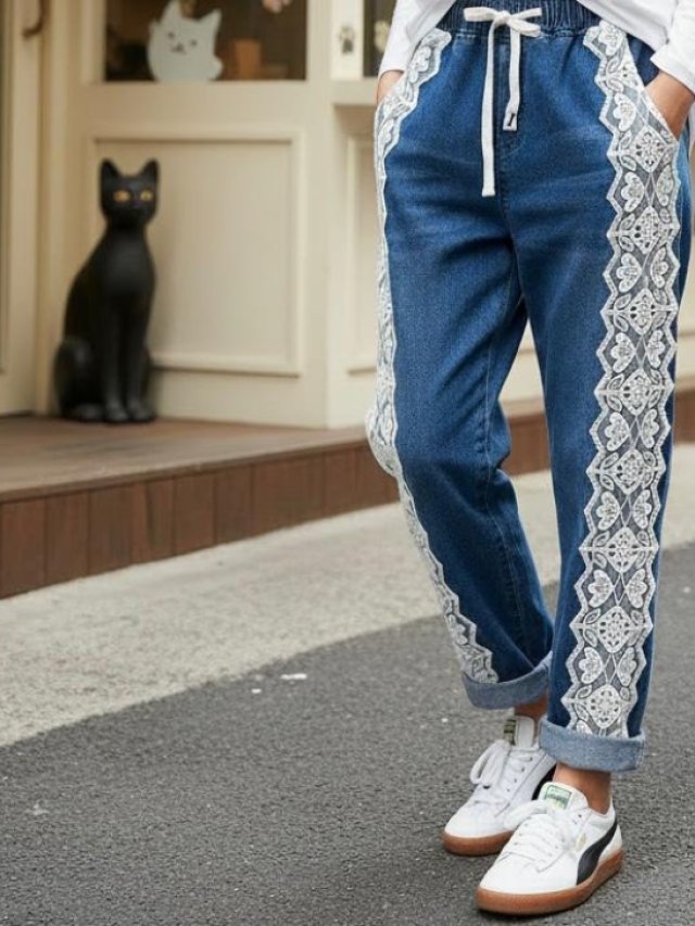 KF817 全橡筋腰立體LACE牛仔褲 腰26-40吋、Hip42-46吋、長92cm $239