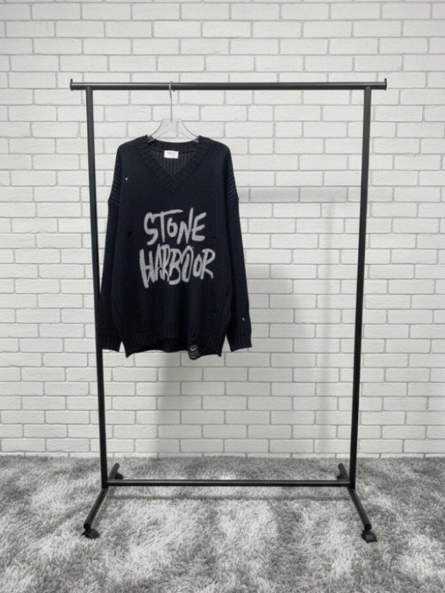 KF818 V領破洞印字線衫 長29吋、闊52吋、$159