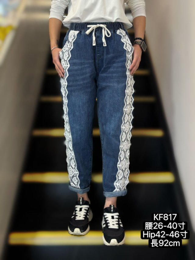 KF817 全橡筋腰立體LACE牛仔褲 腰26-40吋、Hip42-46吋、長92cm $239