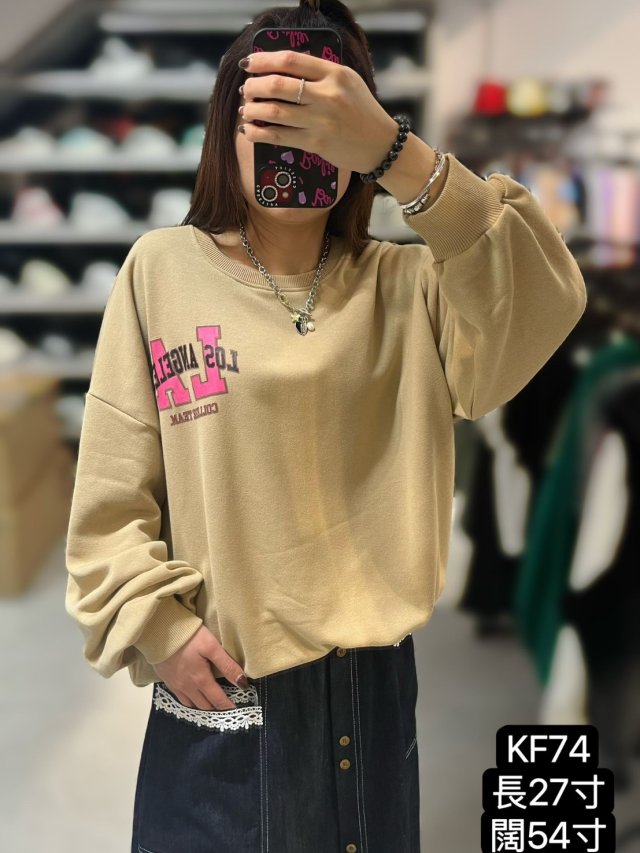 KF74 前細文字背後大LA文字TOP $139 黑、杏、綠 長27寸、總闊54寸