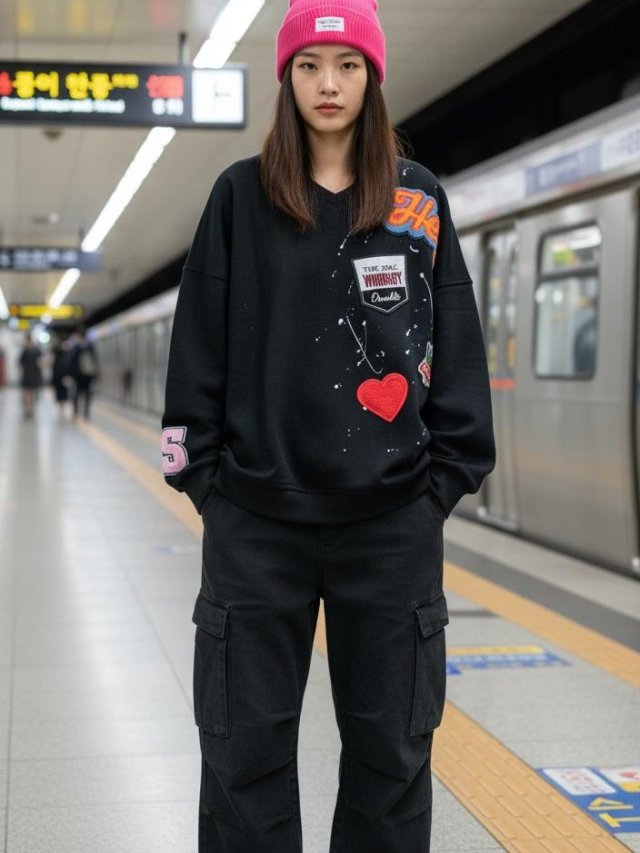 KF847 哈哈笑太陽花有帽TOP 黑、灰 長29寸、闊58寸 $199