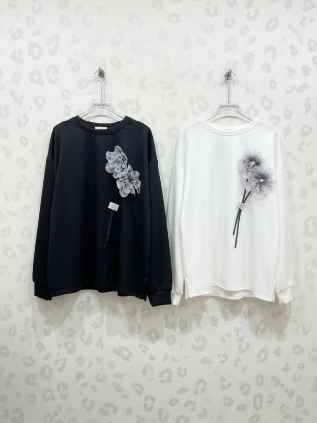 KF853 太空棉料左胸立體花TOP 黑、白 長26寸、闊50寸 $129,買2件或以上可減$10
