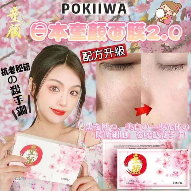 BY539-日本人氣-POKIIWA童顏面膜(7片-一組)$169@1-2盒以上-$159@1-(買2盒送1盒🎄日本限定✴️「流櫻精華油」--)
