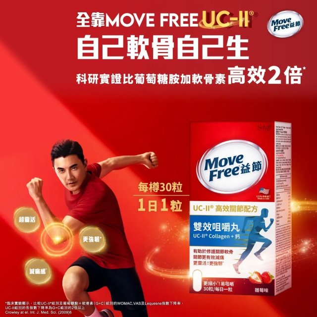 No.1850 MoveFree - 益節UCII® Collagen +鈣 雙效咀嚼丸 (30粒,每日1粒) $265@1件 ,$465@2