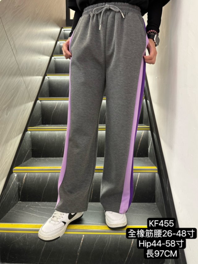 KF455 全橡筋腰索繩紫拼邊太空棉長褲 $130 黑、灰 📌腰26-48寸、Hip44-58寸、長97cm