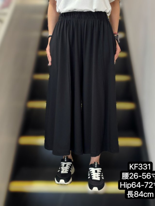 KF566 全橡筋太空棉側開叉裙褲 $129 黑、啡、灰、紫、綠 FREE、L