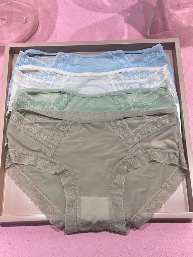 YR05 滑料花邊設計底褲 杏、綠、白、藍 $49@1條 📌腰24-46寸 HIP26-46寸