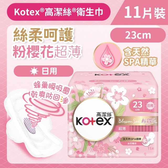 (現貨) No.2727 高潔絲Kotex Blossom Spa粉櫻花限量版超薄日用23CM 11片/包 $16@1包