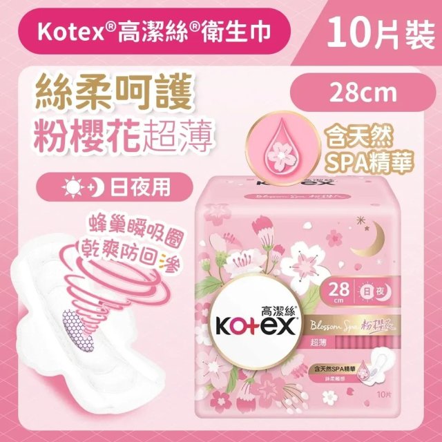 (現貨) No.2728 高潔絲 Kotex Blossom Spa粉櫻花限量版超薄日/夜用28CM 10片/包 $16@1包