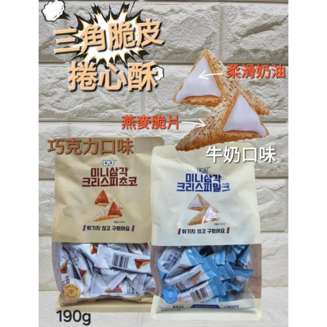 FD2032 韓國 🇰🇷 迷你三角脆皮捲心酥190g $35@1,2包或以上$32@1 藍 - 牛奶奶油口味 啡 - 濃郁巧克力口味