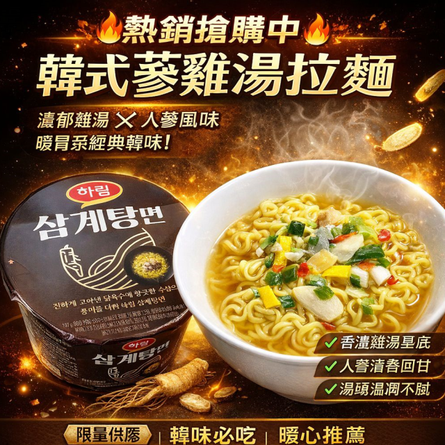 FD2034 韓國 🇰🇷 蔘雞湯拉麵(杯裝) 107g $23@1個,3個或以上$19@1