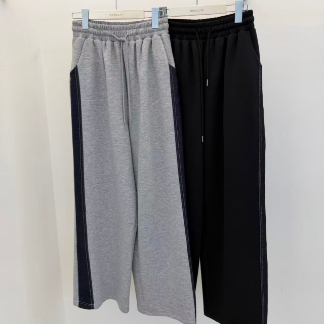NP46 韓國 🇰🇷 全橡筋腰索繩兩側撞色顯瘦長褲 $229 黑、灰 S、M