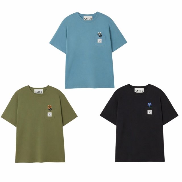 No.130 SATUR (U) Flower Pocket Half T-shirt S、M、L、XL $279(SA261UTS04) BLUE 藍、KHAKI 卡其