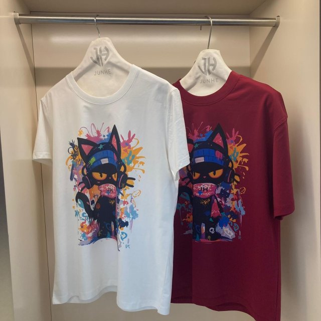JU71 韓國 🇰🇷潮牌 JUNHE 黑貓 印花短袖TEE $188 酒紅、白