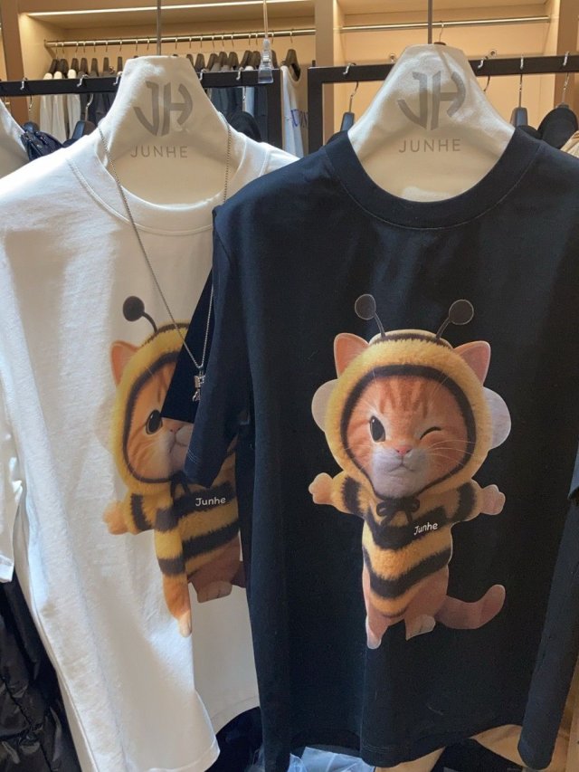 JU50 韓國 🇰🇷潮牌 JUNHE 蜜蜂貓貓 印花短袖TEE $188 黑、白