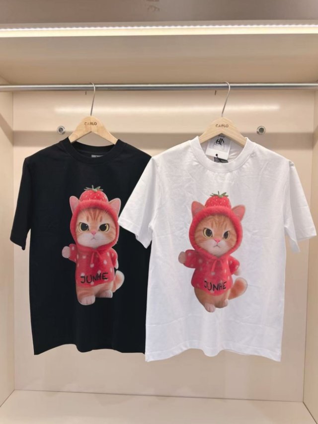 JU74 韓國 🇰🇷潮牌 JUNHE 草莓貓咪印花短袖TEE $188 黑、白 S、M、L