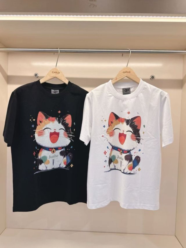 JU75 韓國 🇰🇷潮牌 JUNHE 開心貓咪印花短袖TEE $188 黑、白 S、M、L