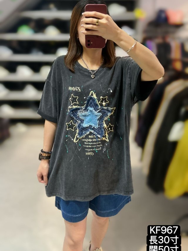 KF967 洗水拼牛仔星星Top $149 📌長30寸、總闊50寸