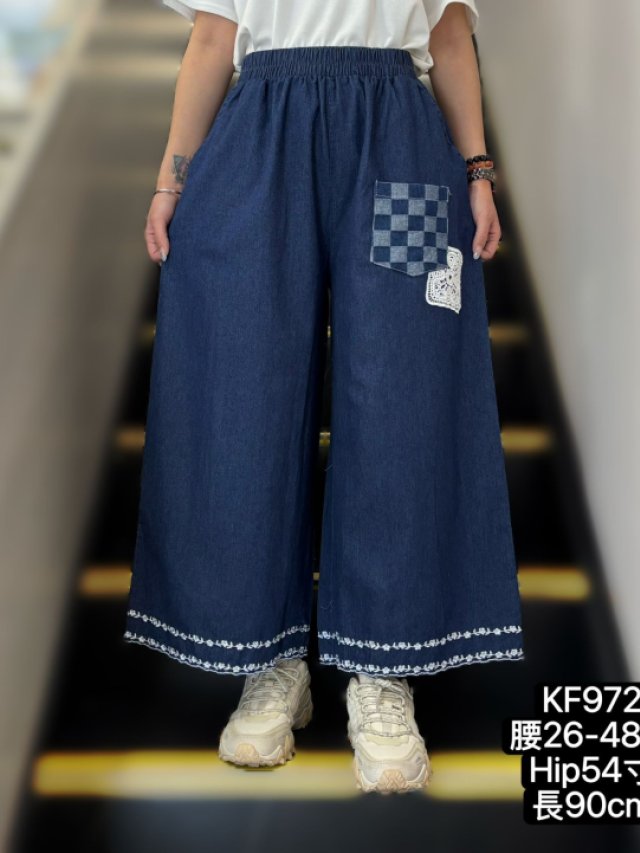 KF972 全橡筋腰刺繡花腳闊褲 $139 📌腰26-48寸、Hip54寸、長90cm