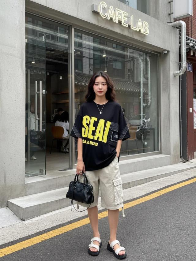 KF17 棉料拼色S大Top 長29吋、闊52吋 $139