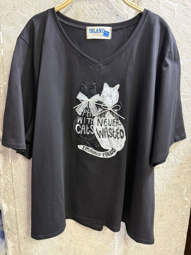 KF987 棉料V領兩隻背影貓TOP 黑、粉、紫 $139 長25吋、闊52吋